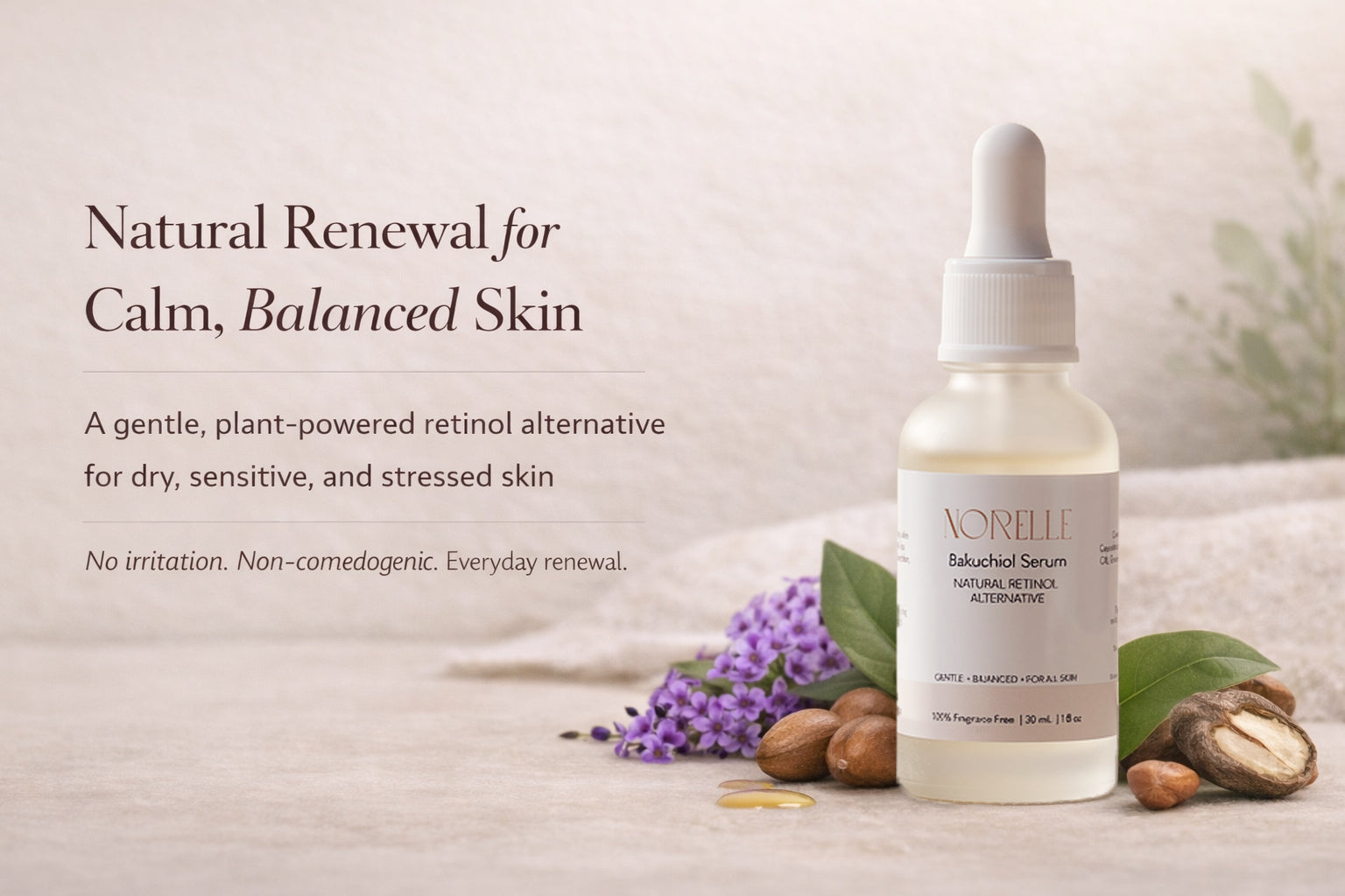 A gentle plant-based alternative to retinol that smooths fine lines and restores clarity — without irritation. Designed to calm, renew, and bring balance back to your skin..