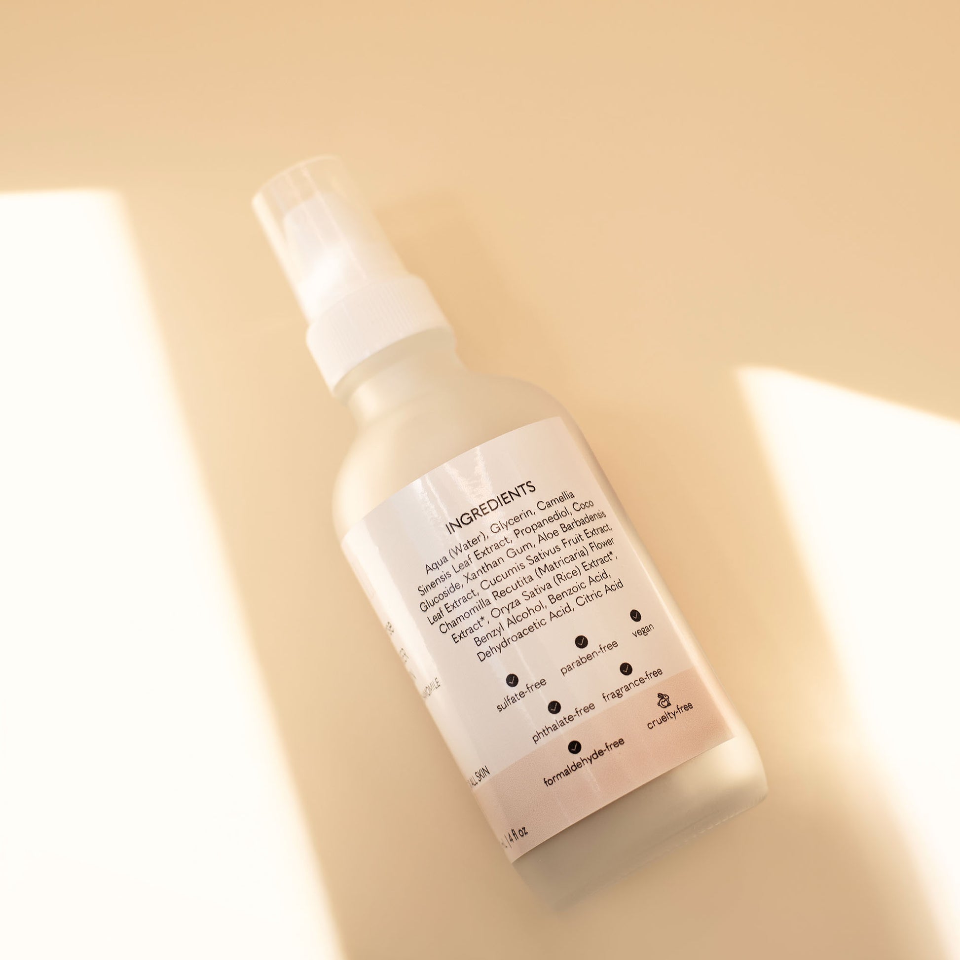 Aqua (Water), Glycerin, Camellia Sinensis Leaf Extract, Propanediol, Coco Glucoside, Xanthan Gum, Aloe Barbadensis Leaf Extract, Cucumis Sativus Fruit Extract, Chamomilla Recutita (Matricaria) Flower Extract*, Oryza Sativa (Rice) Extract*, Benzyl Alcohol, Benzoic Acid, Dehydroacetic Acid, Citric Acid