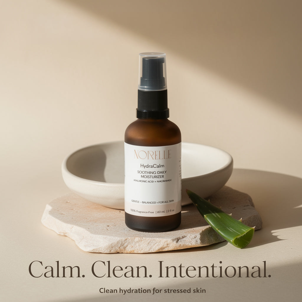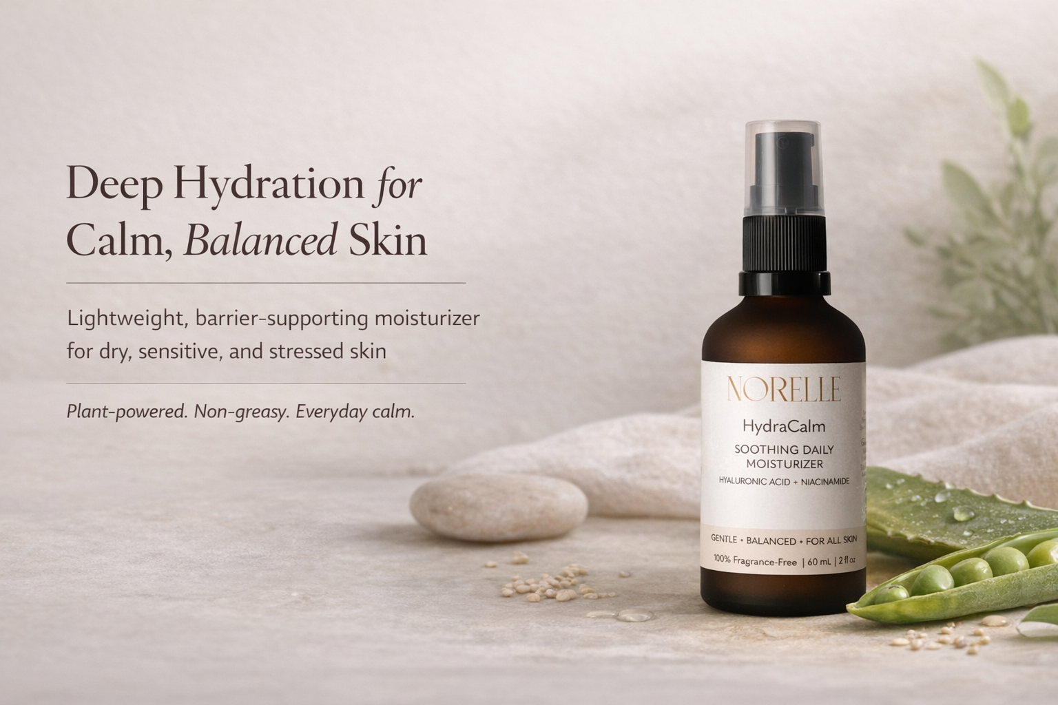 Unlike heavy creams that can feel greasy or overwhelming, Norelle’s HydraCalm moisturizer delivers hydration, calm, and radiance in a lightweight, plant-powered formula. Your skin looks and feels balanced, luminous, and refreshed — day after day.